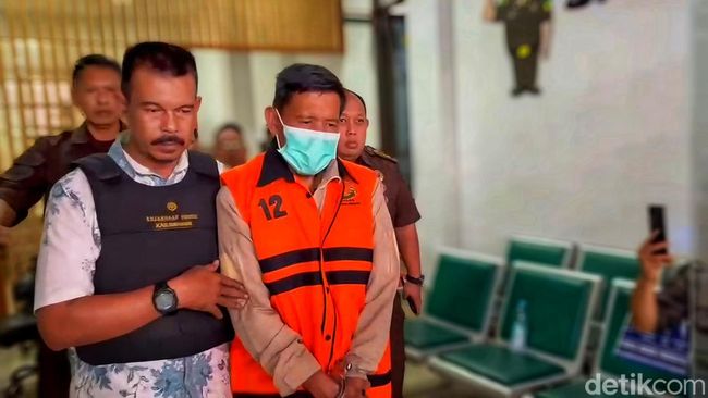 Kepala Dinas Lingkungan Hidup (DLH) Kabupaten Sukabumi, Prasetyo yang kemudian disebut oleh pihak kejaksaan dengan inisial Mr P, akhirnya muncul di hadapan publik dengan mengenakan rompi tahanan oranye bertuliskan angka 12.