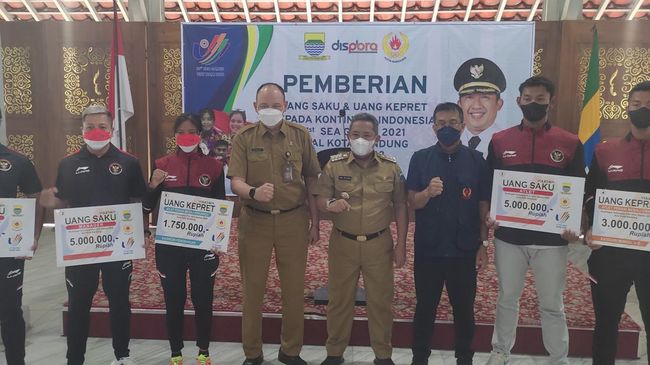 Wali Kota Bandung Yana Mulyana memberikan uang kadeudeuh kepada para atlet asal Kota Bandung yang berlaga di SEA Games 2021 Vietnam. Uang kadeudeuh itu diberikan sebagai apresiasi karena mereka telah ikut mengharumkan nama Kota Bandung di kancah internasional.