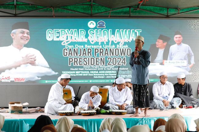 Sebanyak 500 Santri Dukung Ganjar Jawa Barat (Jabar) bersama 25 kiai muda se-Kabupaten Cianjur menggelar deklarasi dukungan untuk Ganjar Pranowo dalam pilpres 2024. Deklarasi itu tertuang dalam kegiatan Gebyar Selawat yang digelar di Yayasan Miftahul Huda, Kabupaten Ciajur di bawah tema 'Damai untuk Negeri'. Kegiatan ini juga dalam rangka menyambut Hari Santri Nasional. Lewat Gebyar Selawat ini para peserta juga mendoakan Indonesia agar diberikan pemimpin yang jujur, adil dan amanah.