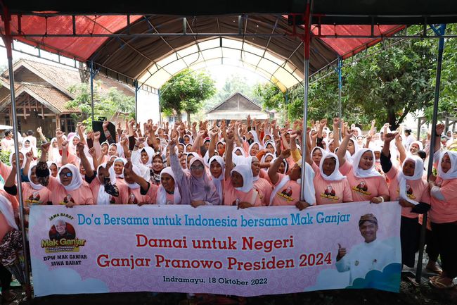 Sekitar 500 Emak-Emak Kabupaten Indramayu yang tergabung dalam relawan Mak Ganjar menyatakan dukungannya untuk Ganjar Pranowo menjadi Presiden 2024. Dukungan itu terjadi dalam acara zikir dan doa bersama bertajuk 'Damai untuk Negeri' yang berlangsung di Desa Jatimunggul, Kabupaten Indramayu.