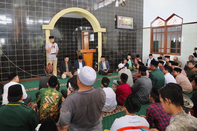 Menteri Pariwisata dan Ekonomi Kreatif (Menparekraf) Sandiaga Uno mendatangi Pondok Pesantren Al-Hasaniyah, Kabupaten Sukabumi, Jawa Barat, Kamis (20/10). Kunjungan tersebut untuk melihat berbagai produk ekonomi kreatif hingga budidaya ikan dari para santri.