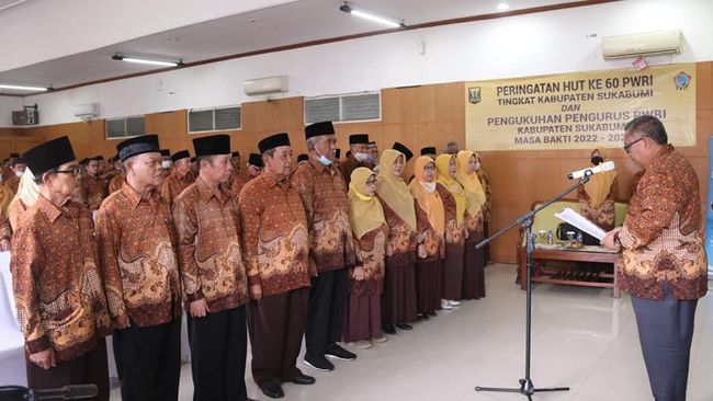 Bupati Sukabumi H. Marwan Hamami mengukuhkan pengurus Persatuan Wredatama Republik Indonesia (PWRI) Kabupaten Sukabumi masa bakti 2022-2027 sekaligus merayakan HUT PWRI ke-60. Pengukuhan organisasi ini dipimpin oleh Ketua PWRI Kabupaten Sukabumi Bambang AA di Pendopo.