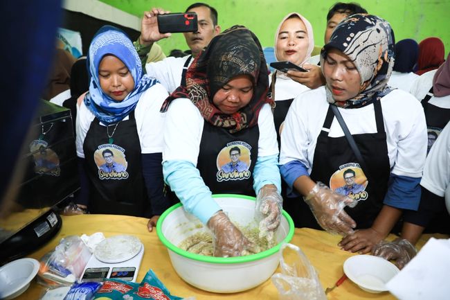 Relawan yang tergabung dalam Gerbong Pecinta SandiUno menggelar pelatihan pembuatan dimsum di Sumedang, Jawa Barat. Pelatihan ini bertujuan untuk membangkitkan motivasi berwirausaha dan membantu menopang kebutuhan ekonomi rumah tangga masyarakat Sumedang.