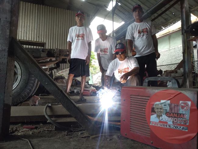 Pada kesempatan tersebut, mereka turut mengenalkan sosok Ganjar Pranowo kepada rekan sopir truk, montir, dan warga setempat.