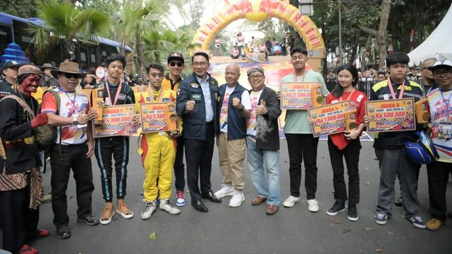 Dalam kesempatan ini, Kang Emil hadir langsung menyaksikan perlombaan dan menyerahkan hadiah kepada pemenang. Ia juga meninjau kreativitas desain kendaraan para peserta yang menarik.