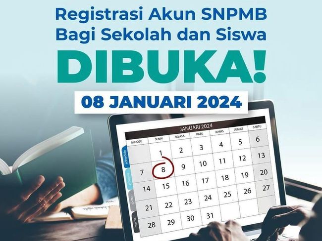Dikutip dari akun instagram resmi SNPMB disebutkan, Pendaftaran akun SNPMB 2024 akan dimulai pada Senin, 8 Januari 2024. Tahapan ini wajib dilakukan untuk sekolah maupun siswa.