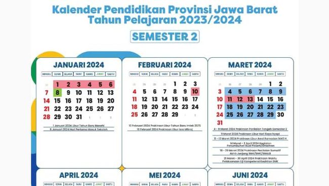 Selain jadwal libur awal Ramadan 2024, di Kalender Pendidikan Provinsi Jabar Semester II juga tercantum sejumlah jadwal lainnya seperti jadwal Penilaian Tengah Semester hingga libur Hari Nyepi.
