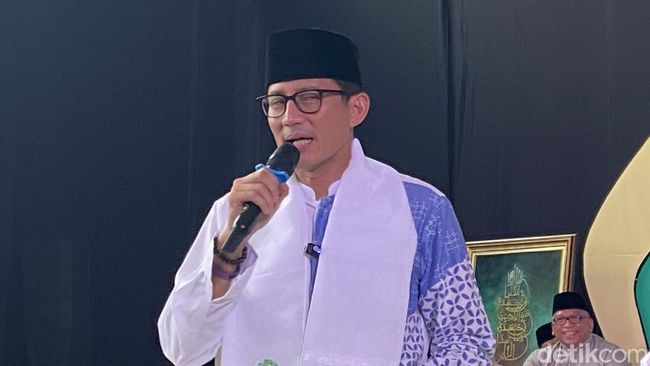 Pantauan detikJabar, Sandiaga Uno didampingi oleh Direktur Aplikasi, Permainan, Televisi dan Radio Kemenparekraf/Baparekraf Iman Santosa. Turut hadir juga pejabat Forkopimda dan Pimpinan Yayasan Ponpes Syamsul Ulum.