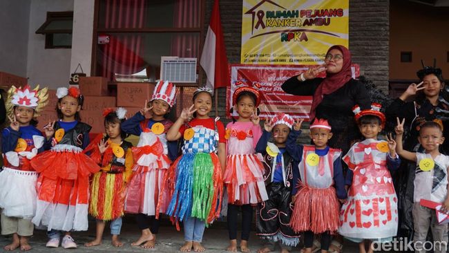 Seperti yang dilakukan oleh puluhan anak-anak di Rumah Pejuang Kanker Ambu. Meski tubuh mereka lemah karena penyakit yang diderita, anak-anak ini tetap antusias merayakan HUT ke-79 RI dengan cara mereka sendiri.