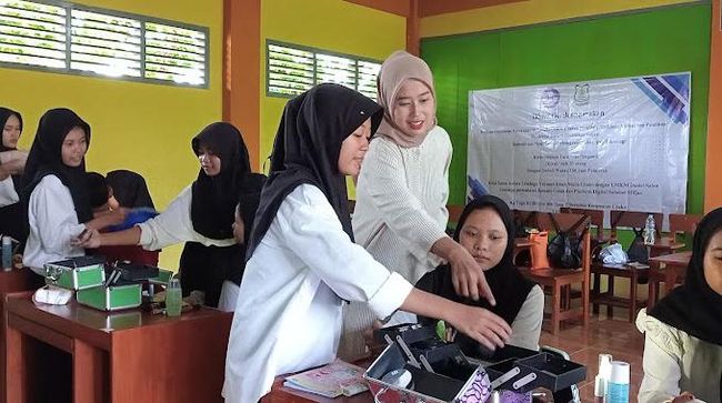 "Kebetulan ada tenaga pengajar di kami yang memang bergerak di bidang makeup artis. Makanya ada 30 siswa yang mengikuti pelatihan keterampilan ini," kata dia.