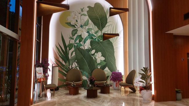 Mural raksasa bergambar daun dan bunga di salah satu sudut lobi menjadi focal point yang menarik dan sangat 'Instagramable'. Meski tidak terlalu luas karena merupakan boutique hotel, desain-desain ruangan yang dihadirkan cukup dapat memanjakan pengunjung.