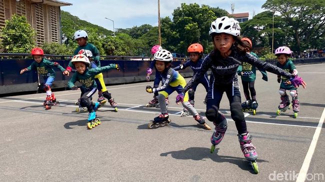 Sementara di lintasan sepatu roda juga nampak sejumlah anak tengah berlatih penuh semangat. Bahkan para orang tua yang ikut serta menemani anaknya terus memberi semangat di pinggir lintasan.