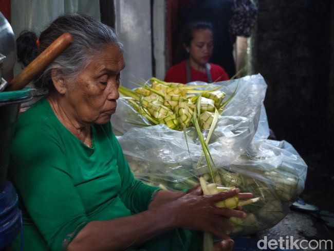 "Dari kecil, dari umur 7 tahun waktu keluarga masih ada. Tradisi turun temurun dari orang tua, dari umur 7 tahun udah bisa bikin kupat," ucap Mak Iim saat berbincang dengan detikJabar.