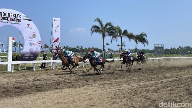 Indonesia's Horse Racing Merdeka Cup 2025 digelar di Pacuan Kuda Legokjawa, Kecamatan Cimerak, Kabupaten Pangandaran, pada Minggu (24/8/2025). Event ini diikuti 86 kuda dari tujuh provinsi dengan 16 kelas yang memperebutkan total hadiah Rp 425 juta.