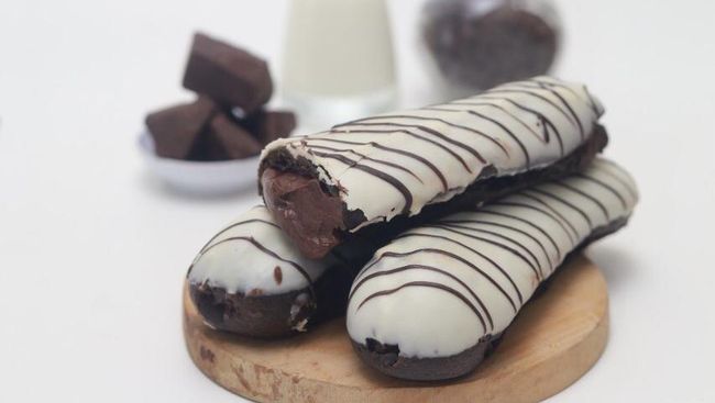 "An eclair ini lagi booming di daerah Jepang karena anak-anak muda itu pengen makanan yang simple. Jadi bentuknya panjang tapi bagian dalamnya ada isian vla cokelat," kata Rahmat selaku baker kepada detikJabar, Selasa (8/3/2022).