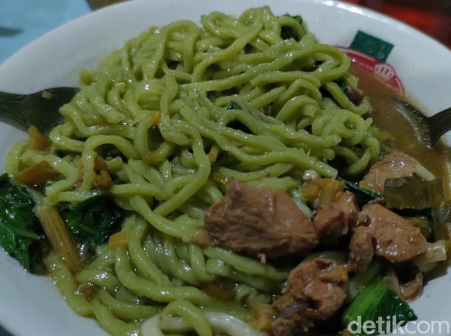 Ada mi ayam yang lagi hits di Kabupaten Garut. Bukan mi ayam biasa, yang ini warnanya hijau karena dibuat dari sari daun bayam!