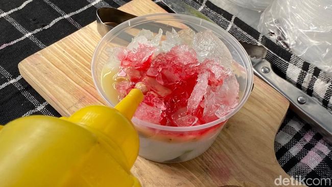 "Seporsinya Rp 10 ribu," kata Ilham (19), penjual es pisang ijo kepada detikJabar, Rabu (27/7/2022).