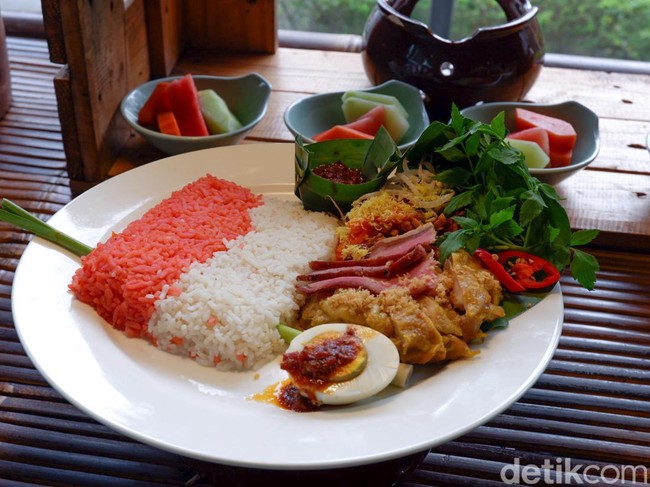 "Nasi merah putih jadi merahnya kita bikin nasi goreng kita kasih cabai merah sama terasi, tetap pakai rempah-rempah Indonesianya kita tonjolin. Kalau putihnya itu nasi uduk. Disitu kan rempah-rempah indonesianya keluar juga," ucap Chef Ansori di lokasi, Senin (15/8/2022).