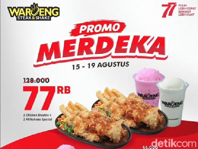 Menyemarakkan HUT RI ke-77, sejumlah pelaku usaha di bidang kuliner banyak yang memberikan promo maupun diskon spesial Hari Kemerdekaan. Jangan sampai ketinggalan berbagai promo dan diskon menariknya.