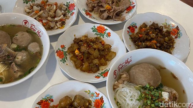 detikJabar berkesempatan mencoba Bakso Tjap Haji, memesan paket bakso spesial berisikan bakso urat, bakso cincang, bakso telur, bakso halus kecil, pangsit goreng, dan mi kuning. Semangkuk bakso paket lengkap ini dibanderol Rp 50 ribu.