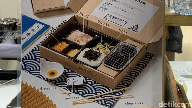 Mereka menjual satu set boks makanan barbeque dengan isi alat pemanggang mini di dalamnya. Jadi, di dalam boks berisi nasi putih, daging sapi, saus, minyak, salad hingga pemanggang mini beserta koreknya. Mereka juga mematok harga terjangkau yakni Rp 69 ribu.
