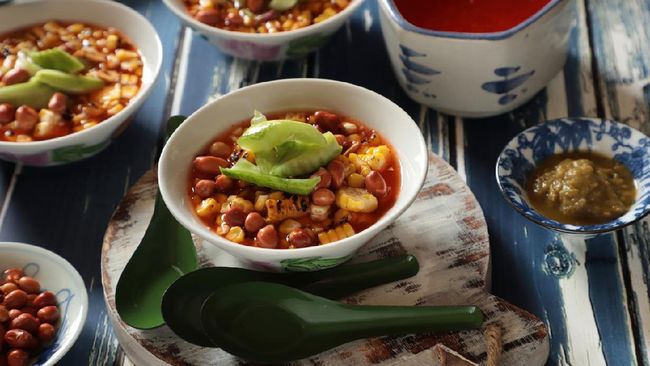 Namun ada yang berbeda dengan asinan yang satu ini. Asinan tersebut dibuat dengan menggunakan bahan utama berupa jagung bakar dan timun. Serta disajikan oleh siraman kuah cuka yang segar, sehingga menciptakan cita rasa yang sedikit pedas dan asam. Dilengkapi dengan kerupuk mi agar terasa lebih nikmat.