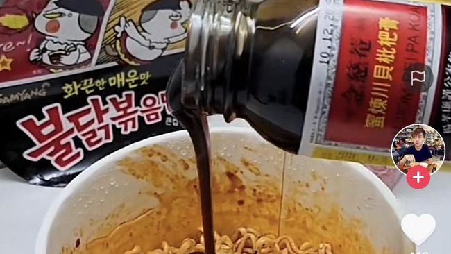 "Mie pedas Korea dengan Pi Pa Gao, rasanya lebih pedas!" tulis keterangan pria itu dalam video TikTok-nya.