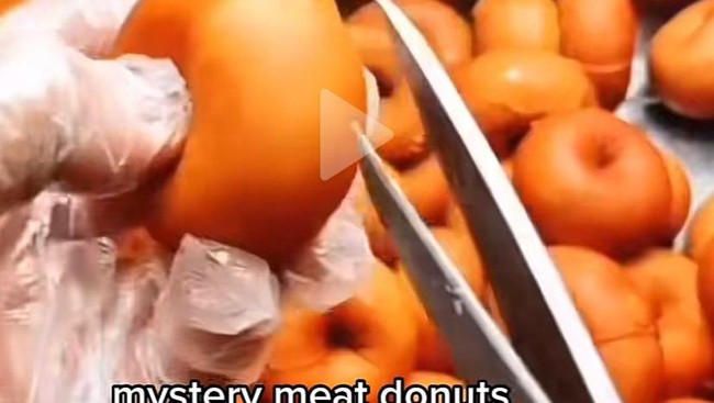 Di dalam video itu, Alavegra menunjukkan donat daging tersebut yang digunting bagian luarnya, hingga bagian dalamnya terbuka dan terlihat tekstur daging berwarna merah muda pucat.