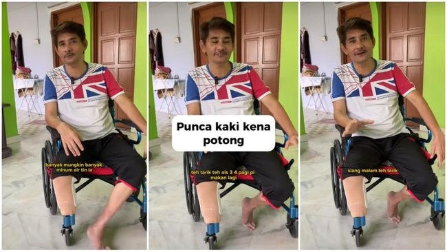 Azlan, seorang pria asal Malaysia harus menjalani amputasi kaki. Ia menyebut biang keroknya adalah keseringan minum minuman manis, seperti teh tarik di masa muda.