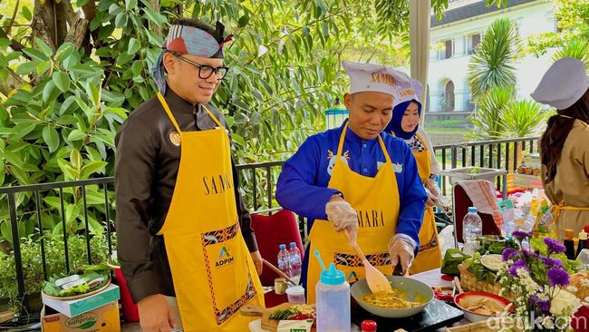 Nah di meja lainnya, ada sajian dari juru masak Balai Kota Bogor. Terlihat Wali Kota Bogor Bima Arya bahkan ikutan bantu-bantu juru masaknya. Bima nampak semangat karena hari ini, ada tiga menu favoritnya yang disajikan.