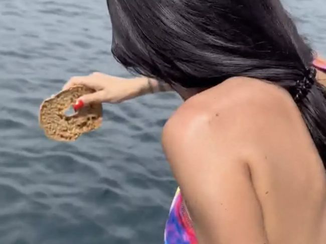 Wanita bernama Ariel Mendy melakukan hal konyol. Dia mencelupkan makanan ke laut dengan tujuan menambah rasa.