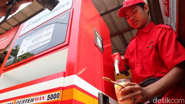 Bukan cuma bentuk dan cara penyajiannya, gerai es teh ini juga menghadirkan pramuniaga yang juga dibuat mirip dengan petugas pom bensin. Pramuniaga di Pertehmina ini memakai seragam merah dilengkapi topi.