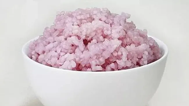 Nasi tersebut memunculkan warna pink lantaran diinfus oleh protein daging sapi. Para ilmuwan membuat pengembangan nasi tersebut untuk asupan nutrisi.