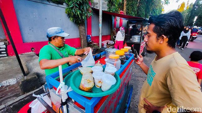 "Ya sehari bisa lah sekitar 200 porsi. Kalau cuaca cerah sampai 250, kemarin kan hujan agak menurun. Ya namanya juga jualan. Biar gampang, itu sudah dibungkus-bungkus, jadi yang beli enggal nunggu lama," kata Juandi.