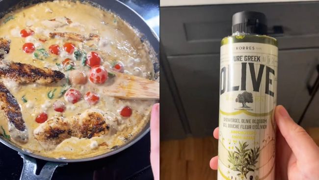 Tampilan masakan itu terlihat berkilau. Berupa olahan ayam panggang disajikan dengan bayam dan tomat ceri, dipadukan dengan saus krim parmesan. Namun, ternyata ada bahan mengejutkan yang tidak sengaja masuk ke dalamnya.