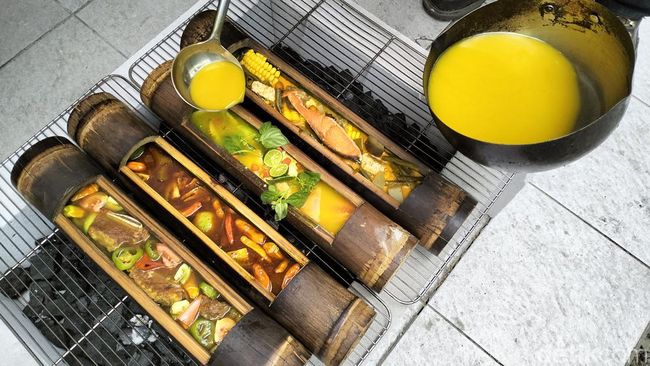 "Cara penyajian setengah matang dibakar lebih dulu, kita siapkan alat pembakaran kemudian bahan-bahannya dimasak di dalam bambu," ujarnya.