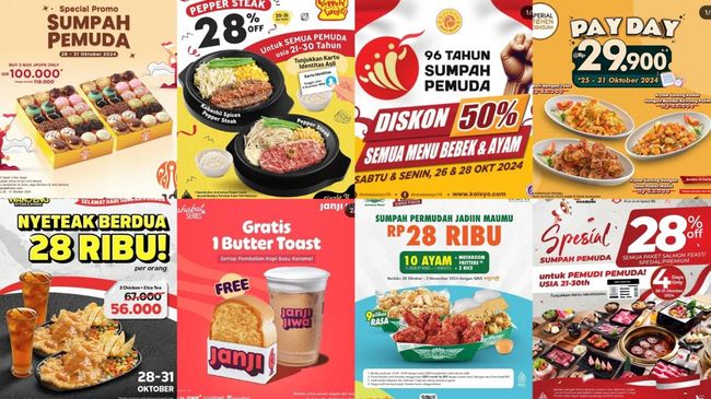 Hari Sumpah Pemuda yang jatuh pada 28 Oktober menjadi momen yang dirayakan dengan penuh semangat di seluruh Indonesia. Tidak hanya sebagai peringatan bersejarah, namun banyak restoran, kafe, dan merek kuliner juga ikut memeriahkan dengan memberikan promo spesial yang bisa membuat acara jajan kamu lebih hemat. Bagi kamu yang hobi jajan atau ingin menikmati berbagai hidangan dengan harga miring, ini adalah kesempatan yang sayang untuk dilewatkan.