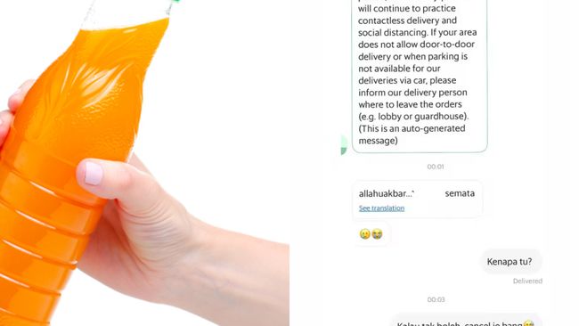 "Ya, silahkan minum sampai Anda terkena diabetes... silahkan lanjutkan," ujar sopir ojol dalam fitur chat.