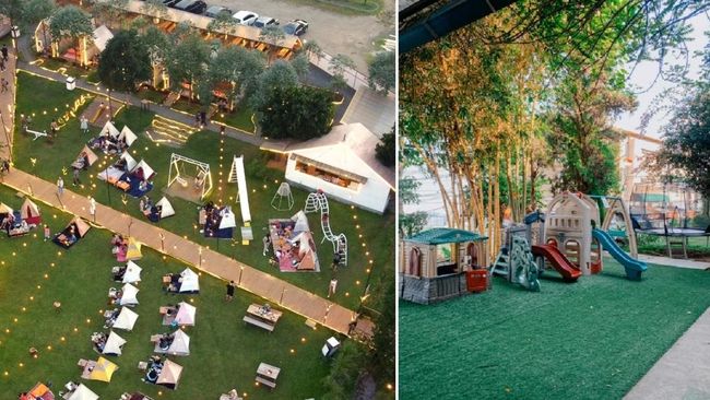 Anak-anak bisa bermain di area playground di taman belakang yang menyediakan berbagai wahana. Mulai dari perosotan, wall climbing, hingga titian tali. Tak hanya itu, di sini juga ada kegiatan yang bisa diikuti anak seperti panahan dan kelas karate. Terdapat pula area rumput sintetis yang aman digunakan untuk berlarian.