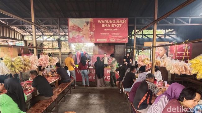 Warung Nasi Mak Eyot menjadi salah satu tempat kuliner di Kota Bandung yang tak boleh untuk dilewatkan. Meski lokasinya berada di wilayah pinggiran, Jalan Kawaluyaan Raya, Buahbatu, tapi setiap hari kedai makanan ini tak pernah sepi dari pelanggan yang berdatangan.