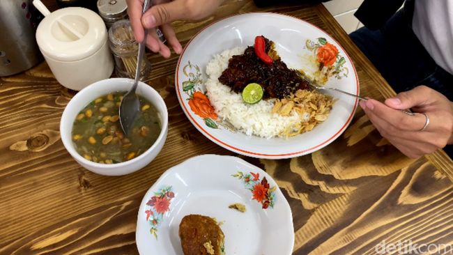 Untuk soto Bandung klasik Rp38 ribu per porsinya, sementara itu soto Bandung dengan oseng sapi pedas manis atau asin Rp43 ribu per porsinya. Ada juga nasi gepuk Rp39 ribu per porsinya dan perkedel isi daging sapi asap Rp6 ribu per buahnya.