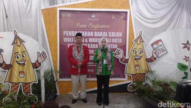 Bakal pasangan calon (Bapaslon) Wali Kota dan Wakil Wali Kota Tasikmalaya, Nurhayati dan Muslim mendaftar ke KPU, Kamis (29/8/2024) sore.