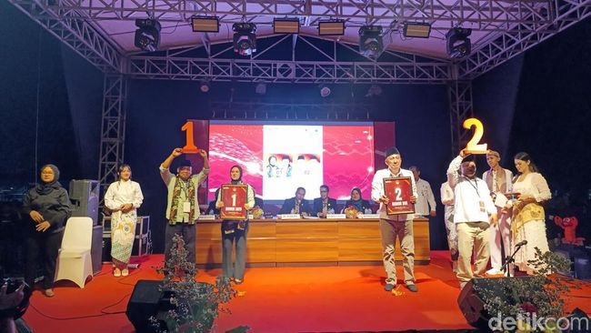 Dua pasangan calon bupati dan wakil bupati untuk Pilbup Pangandaran 2024 mengikuti pengundian nomor urut. Paslon Ujang Endin Indrawan-Dadang Solihat dan Citra Pitriyami-Ino Darsono tiba di Kantor KPU Jalan Sukaresik, Pangandaran pada Senin (23/9/2024) pukul 20.00 WIB.