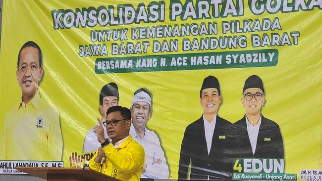 Diketahui, Partai Golkar mengusung dan mendukung pasangan Cabup-cawabup Bandung Barat Edi Rusyandi-Unjang Asari (Edun) di Pilkada KBB 2024. Pasangan Edun juga didukung oleh beberapa partai politik lain, seperti Partai Solidaritas Indonesia (PSI).