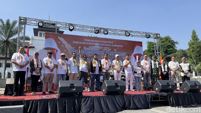 Deklarasi Kampanye Berintegritas diselenggarakan Bawaslu Jabar di depan Gedung Sate pada Minggu (6/10/2024) pagi. Dalam acara bertema 'Reugreug Pageuh, Repeh Rapih' ini, Bawaslu mengundang keempat Paslon Gubernur-Wakil Gubernur Jabar.
