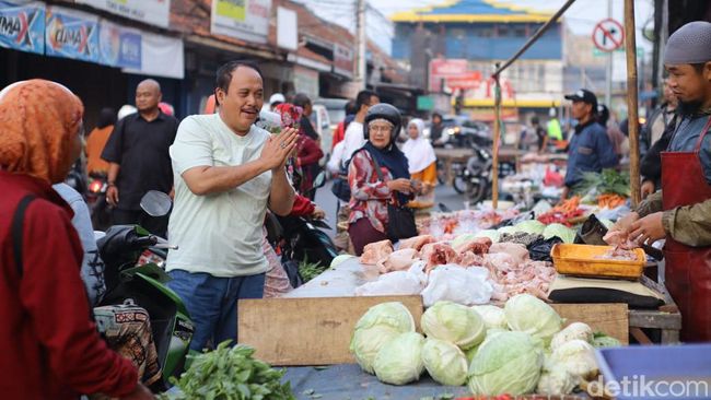 Calon Gubernur Jawa Barat nomor urut 2 Jeje Wiradinata mengunjungi Kabupaten Sumedang, Selasa (15/10/2024). Dia berkunjung ke salah satu pasar tradisional untuk mendengar dan menampung aspirasi pedagan dan warga.