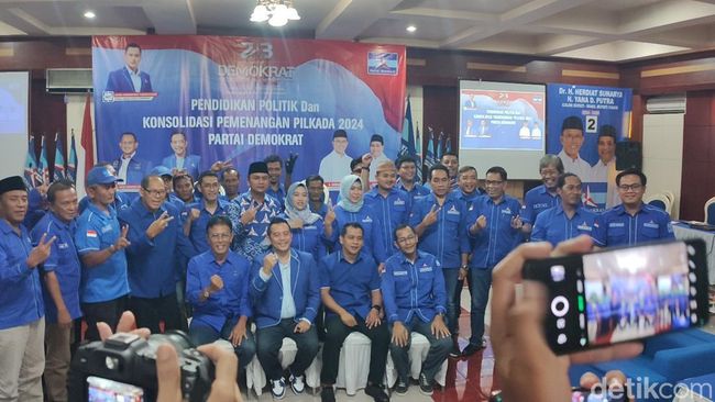 DPC Partai Demokrat mengadakan pendidikan politik dan konsolidasi pemenangan Pilkada 2024 kepada para kadernya di Hotel Tyara, Selasa (15/10/2024). Partai Demokrat salah satu pengusung calon tunggal Bupati dan wakil Bupati Ciamis Herdiat Sunarya dan Yana D Putra. Melawan kotak kosong, Partai Demokrat Ciamis menargetkan kemenangan 80 persen.