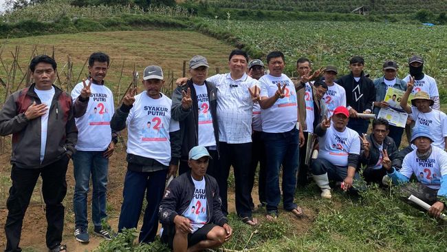 Calon Bupati Garut nomor urut 02, Syakur Amin menyambangi para petani cabai keriting di kawasan Kecamatan Cikajang, Garut, Jumat, (18/10/2024). Di hadapan mereka, Syakur berbicara peningkatan kesejahteraan melalui produk olahan cabai.