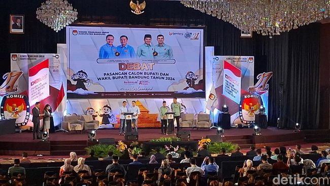Dua pasangan calon Bupati dan wakil Bupati Bandung menyampaikan sejumlah visi misi dalam debat publik perdana di Hotel Sutan Raja, Soreang, Rabu (30/10/2024) malam. Mereka menjanjikan sejumlah program yang dikhususkan untuk masyarakat Kabupaten Bandung.