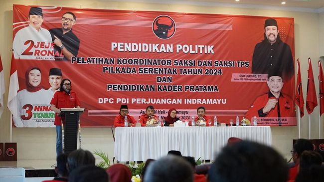 PDIP Kabupaten Indramayu terus memanaskan mesin partai jelang pelaksanaan Pilkada Serentak 2024. Mereka juga mulai melatih ribuan kader hingga saksi untuk mengawal suara para calon yang diusung PDIP.